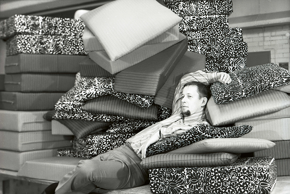 Ahti Taskinen nousi 1960-luvulla yhdeksi suomalaisen huonekalumuotoilun tähdistä ja uranuurtajista. Hän toimi Kalusteyhtymän taiteellisena johtajana ja suunnitteli muun muassa klassikkonsa Fennia- ja Tapiola-sohvakalustot Vilka Oy:lle ja Easy-vuodetuolin sekä Rento-nojatuolin Myrskylä Oy:lle. Taskinen noteerattiin laajasti myös kansainvälisillä messuilla ja lehdistössä.