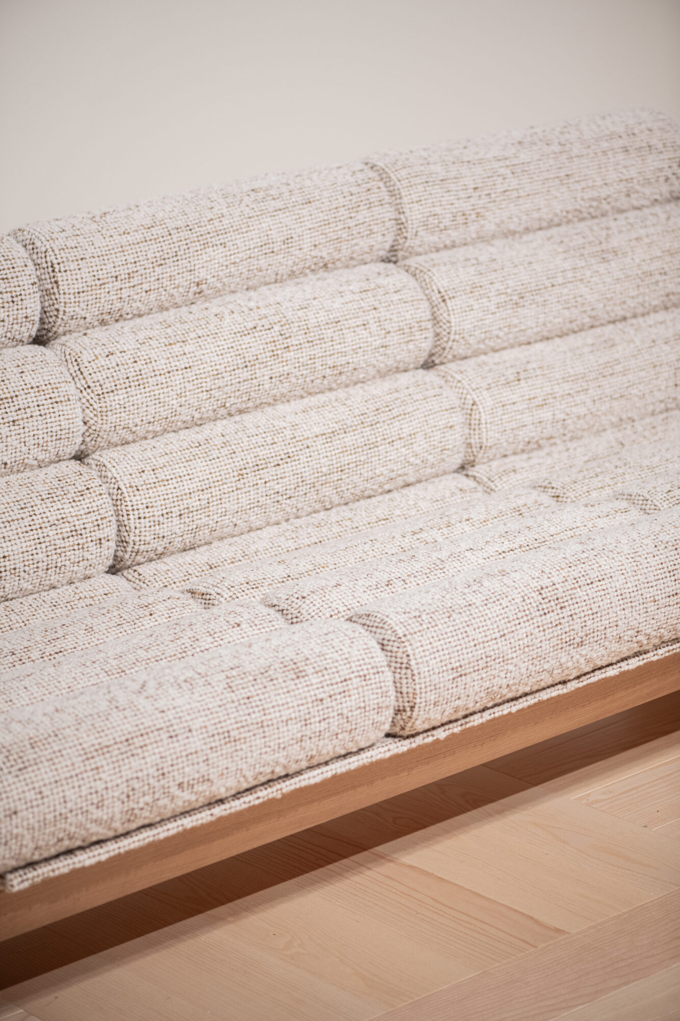 Lepotuolien rinnalle on tuotu myös tamminen Rento-sohva, jonka muotokieli pohjautuu samaan ajatukseen kuin klassikoksi nousseessa nojatuolissa. Rento-sohva tuo kotiin palan suomalaista muotoiluhistoriaa, joka on yhtä ajankohtainen tänään kuin yli viisikymmentä vuotta sitten. Fasetti on tuonut Rento-sohvan uudelleen tuotantoon alkuperäistä mallia uskollisesti kunnioittaen. Tamminen runko, Lauritzonin Fusion-kangas ja nahkaiset käsinojat muodostavat harmonisen kokonaisuuden.