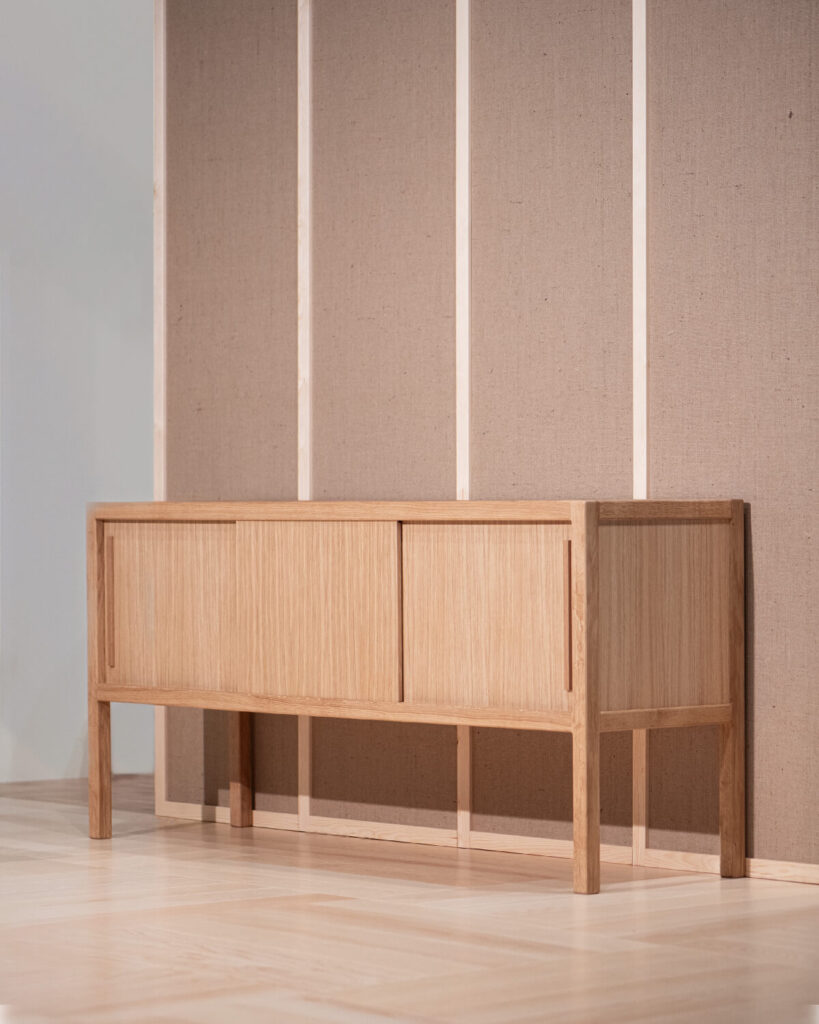 Näyttely-senkki on ajaton ja monipuolinen kaluste, jossa on käytännölliset liukuovet. Mittasuhteiltaan ja kooltaan Näyttely-senkki sopii luontevasti monenlaisiin tiloihin ja käyttötarkoituksiin. Sen voi sijoittaa esimerkiksi ruokailuryhmän yhteyteen astiasenkiksi, olohuoneeseen kirjojen säilyttäjäksi tai vaikka tv:n alapuolelle.