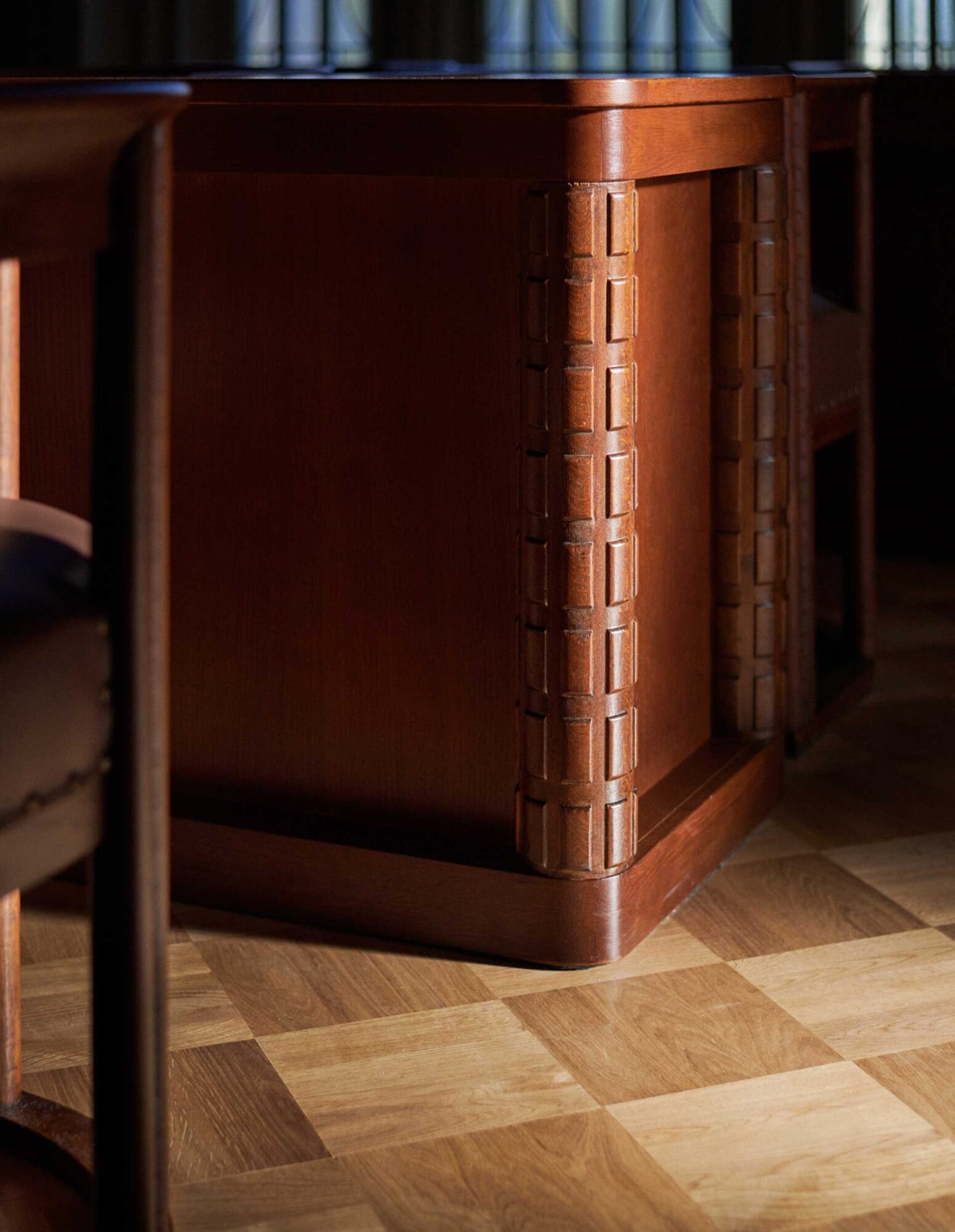 Valtuustosalin puheenjohtajien korokkeen sekä siihen liittyvien pöytäryhmien aikaa vievän kunnostuksen Fasetti toteutti yhdessä muiden projektin kirves- ja parkettityömiesten kanssa.