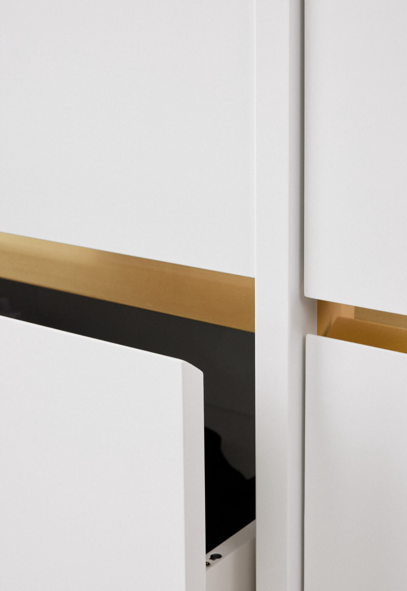 Fasetti valmisti ja asensi mittatilauskaapistot asiakkaan kodinhoitohuoneeseen. Kaapeissa on detaljeina messinkilistakoristeet.