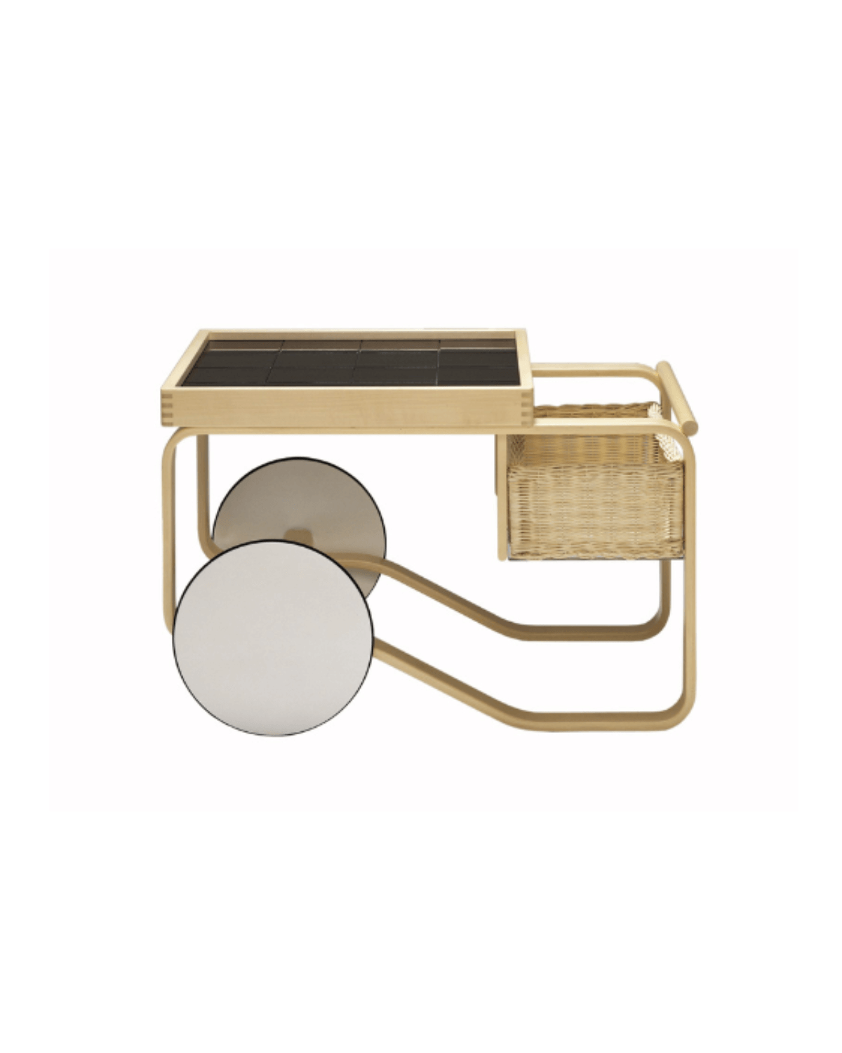 Perinteisen funktionalistinen kaluste monikulttuurisilla mausteilla lanseerattiin kansainvälisesti Pariisin maailmannäyttelyyn vuonna 1937. Tarjoiluvaunu 900 on luonteikas ja monikäyttöinen ja sopii täydellisesti kaikkeen kattaukseen aamupalasta päiväkahviin tai iltateehen.