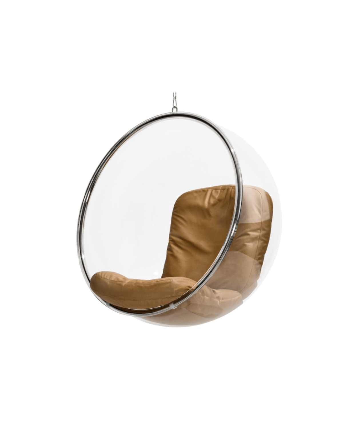 Riippuva Kupla-tuoli on valmistettu akryylistä ja ruostumattomasta teräksestä sekä saatavilla neljällä eri nahkavaihtoehdolla. Väreinä valkoinen, musta, hopea ja luonnonväri.