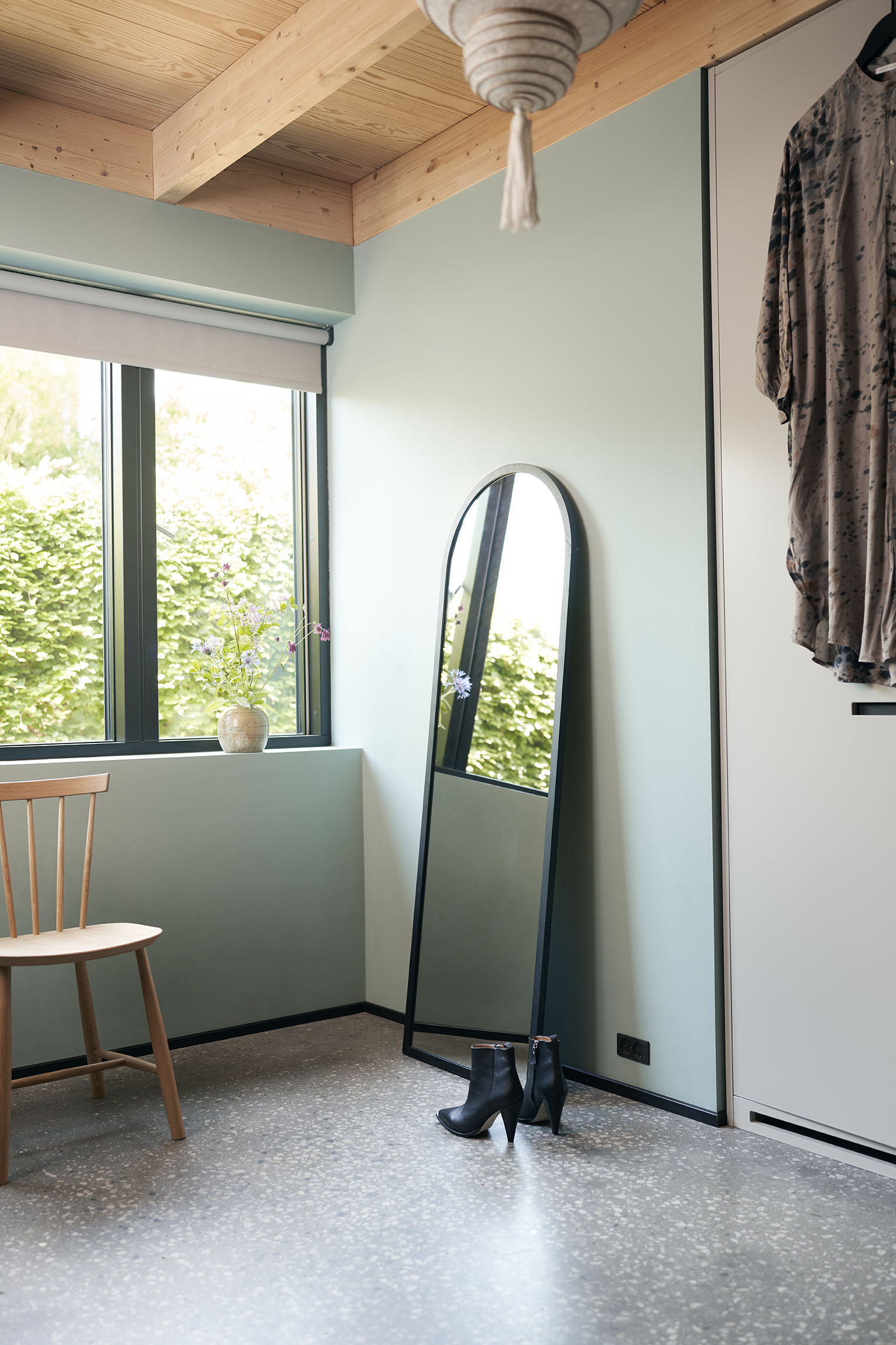 FDB Møblerin I2 Mossø -peili on elegantti, pitkä peili, jossa on puukehykset ja kaareva yläosa. Peili on osa Mossø-peilisarjaa, jonka ovat suunnitelleet tanskalaiset Diana Mot ja Isabella Bergstrøm.