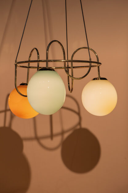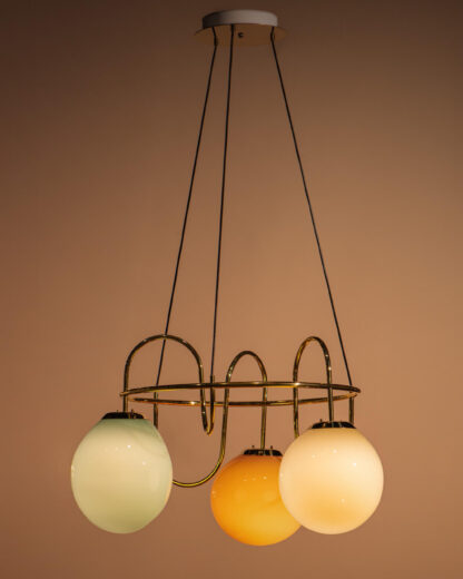 Valaisimen messinkinen runko ja pastellisävyiset lasikuvut muodostavat poeettisen, mutta leikkisän kokonaisuuden. Klassinen messinki patinoituu kauniisti ja toimii erinomaisesti valaisinmateriaalina. Gravitasin lasikuvut suupuhalletaan Riihimäellä ja messinkiset rungot valmistetaan Fasetin verstailla Hollolassa.