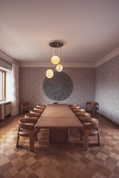 Gravitas-valaisimen rakenne perustuu toisiinsa tukeutuviin taivutettuihin runkoihin, joissa herkin sävyin väritetyt lasikuvut lepäävät. Messinkinen runko ja pastellisävyiset lasikuvut muodostavat poeettisen, mutta leikkisän kokonaisuuden. Klassinen messinki patinoituu kauniisti ja toimii erinomaisesti valaisinmateriaalina.
