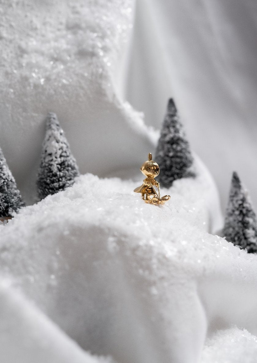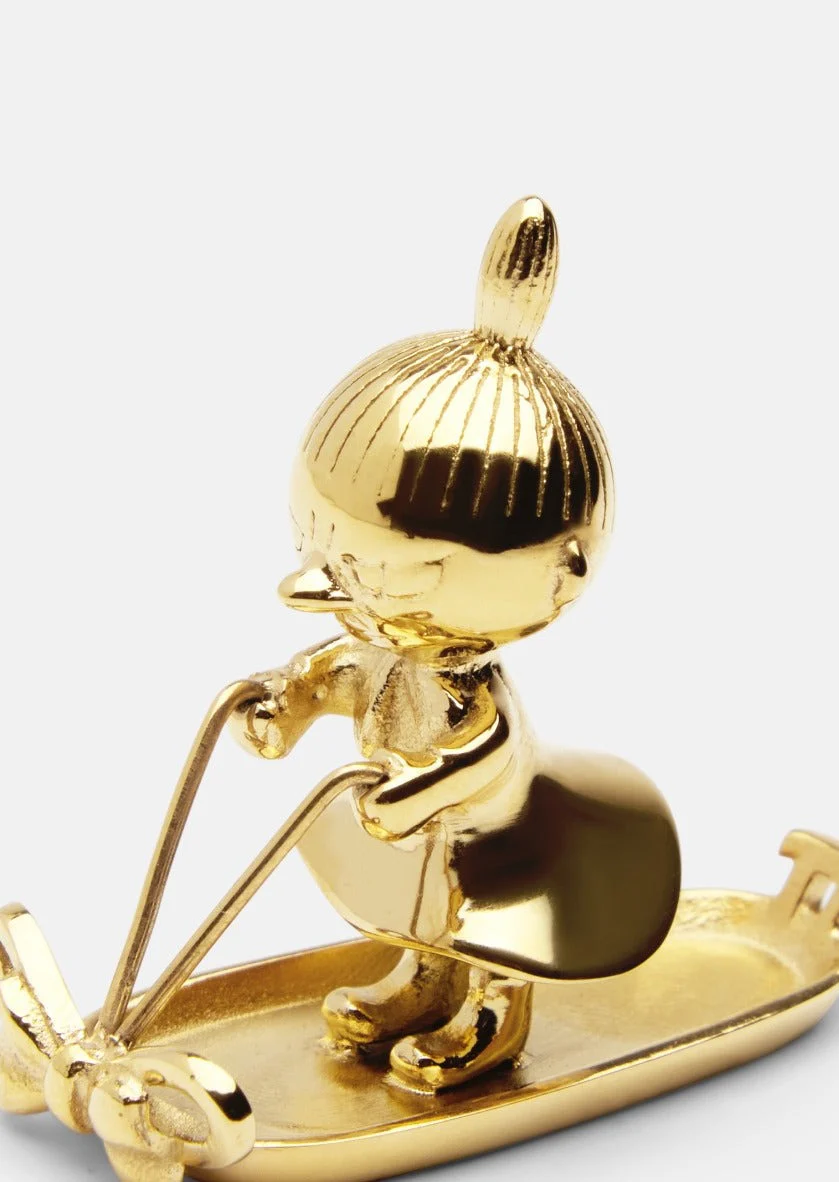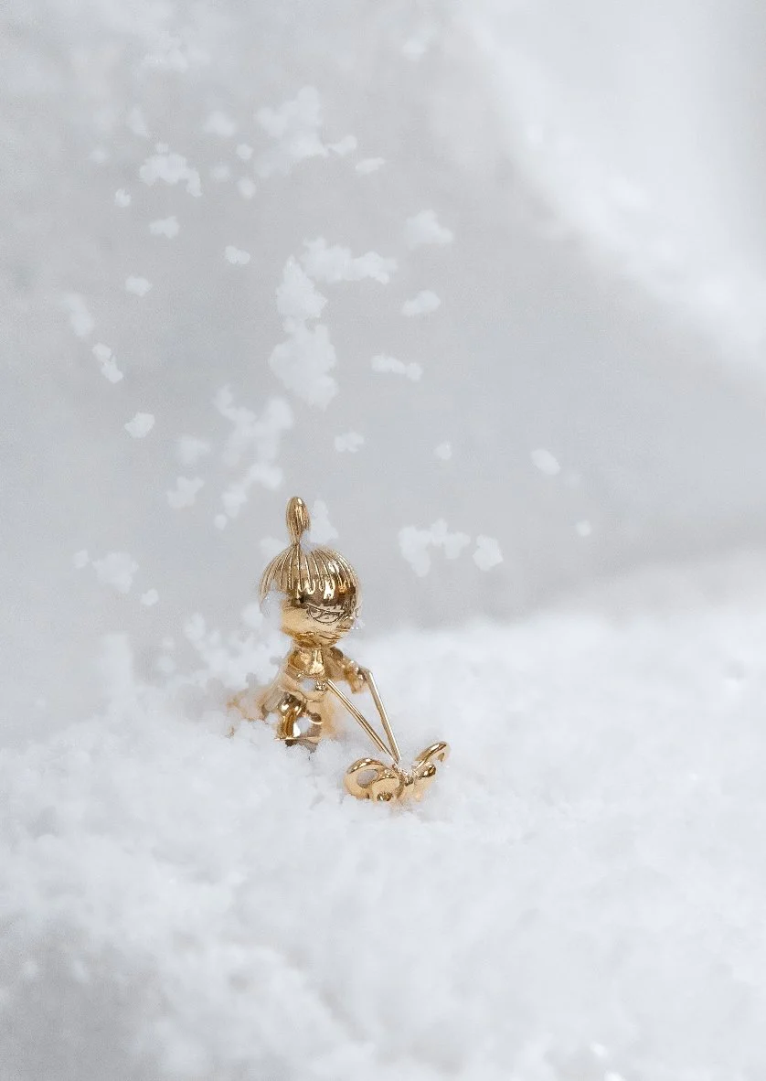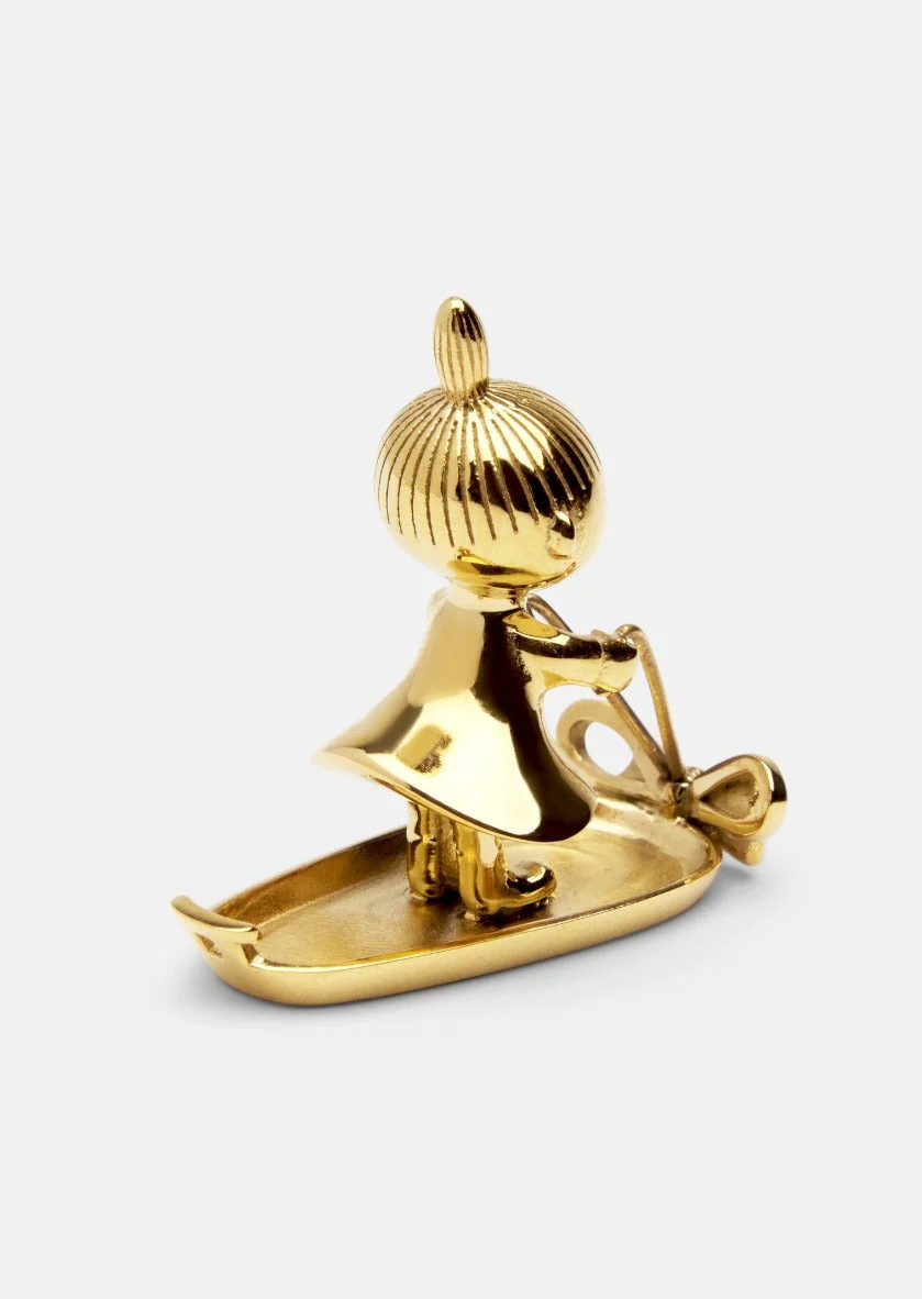 Skultunan Pikku Myy kelkalla -figuuri on Moomin x Skultuna -kokoelman talvikauden erikoismalli. Kokoelmassa Tove Janssonin rakastetut muumihahmot ovat saaneet ylleen modernin ja elegantin kultaisen hohteen.