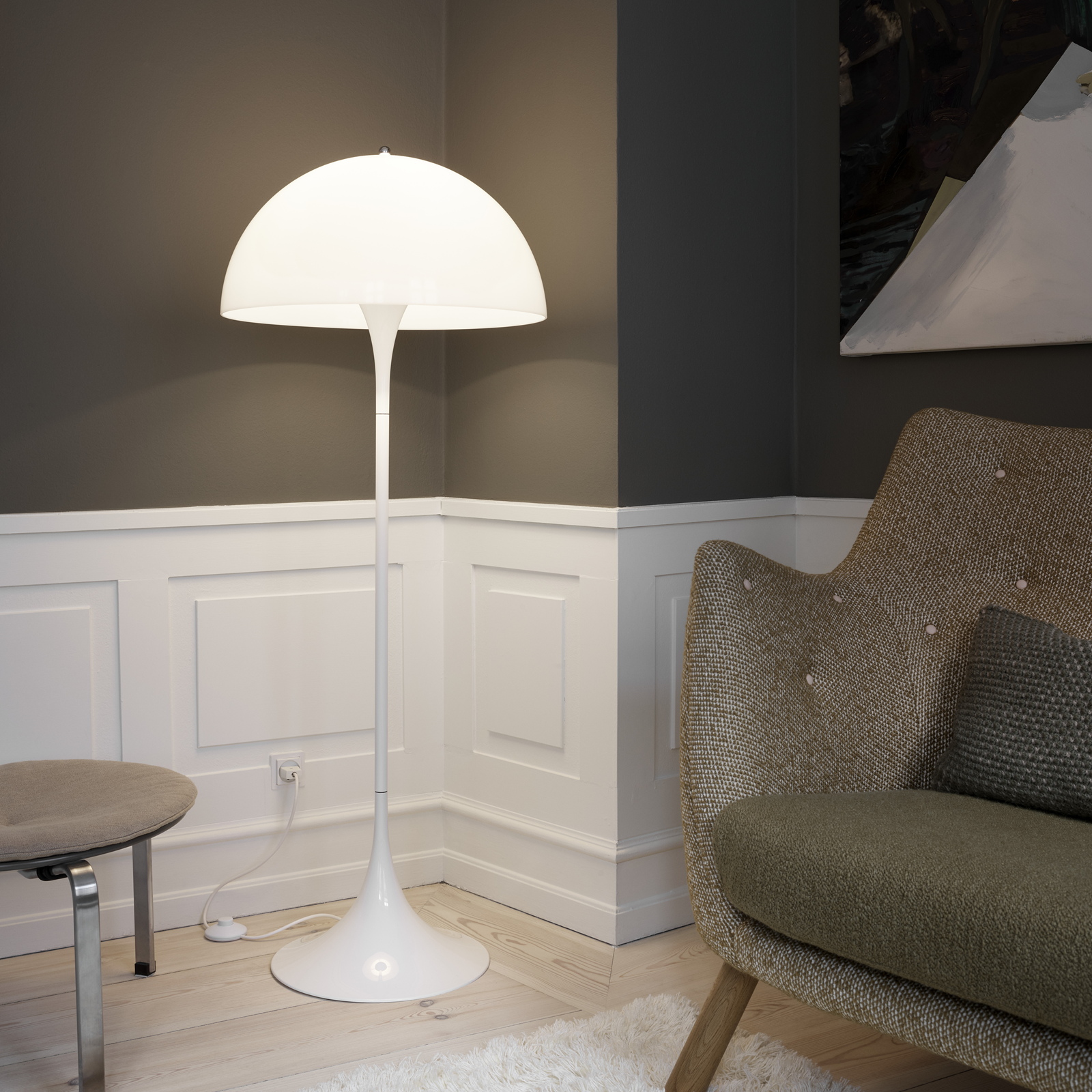 Louis Poulsenin Panthella-lattiavalaisin kuuluu suosituimpiin Verner Pantonin suunnittelemiin tuotteisiin. Pantonin ajatuksena oli luoda valaisin, jossa sekä varjostin että varsi heijastaisivat valoa ,ja Panthella-valaisimen valonlähde sijaitseekin valkoisen, puolipallon muotoisen akryylivarjostimen sisäpuolella. Trumpetin muotoisesti levenevä jalka antaa valaisimelle paitsi veikeän ja tasapainoisen ilmeen, myös oman lisänsä valon sävyyn. Vuonna 1971 julkaistu Panthella on säilyttänyt asemansa klassikkona, ja vuosien varrella valaisinperhe on täydentynyt uusilla malleilla ja väreillä.