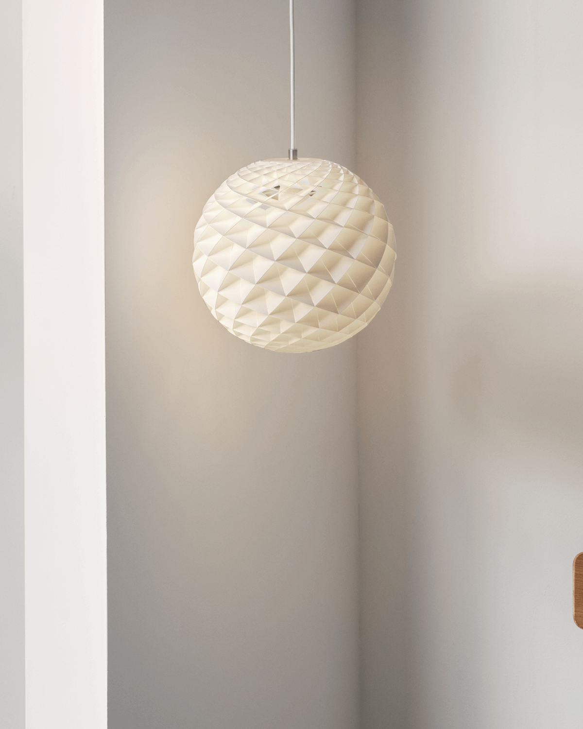 Pallomainen riippuvalaisin luo häikäisemätöntä valoa, jota valaisimen muodostavat vinoneliömäiset solut heijastavat. Valaisimen rakenteen ansiosta valo loistaa yläpuolelta yli 45 asteen kulmasta häikäisemättä katsojaa ja valaisin luo myös alaspäin suunnattua valoa sekä ylöspäin suuntautuvaa hehkua. Näin se valaisee myös katon, mikä tehostaa ympäröivän tilan tunnelmaa. Jokainen solurakenne muotoilee valoa luomalla pehmeitä suoran ja heijastuneen valon välisiä siirtymiä, jotka korostavat riippuvalaisimen muodostamaa upeasti hehkuvaa palloa.