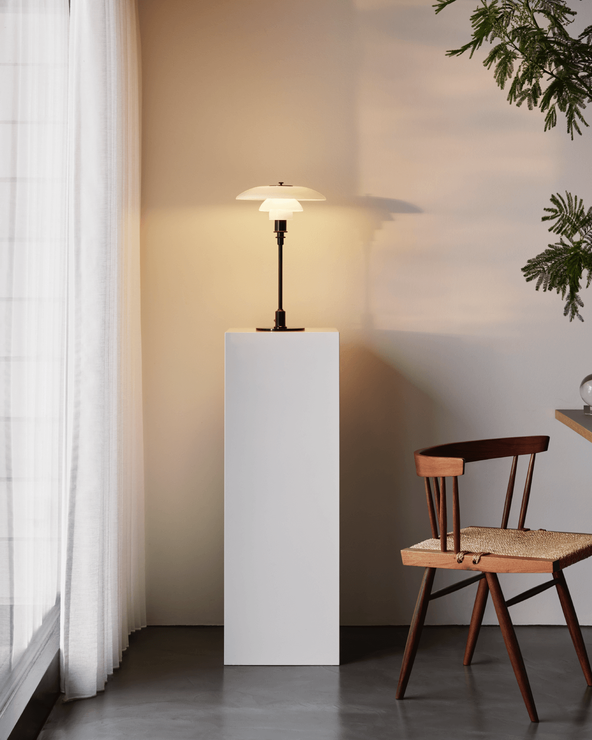 Valaisimen muotoilu perustuu heijastavaan 3-varjostinjärjestelmään, joka suuntaa suurimman osan valosta alaspäin. Varjostimet ovat suupuhallettua, kolmikerroksista opaalilasia, jonka yläpinta on kiiltävä ja alapuoli hiekkapuhallettu ja joka antaa pehmeän ja yhtenäisen valonjaon.