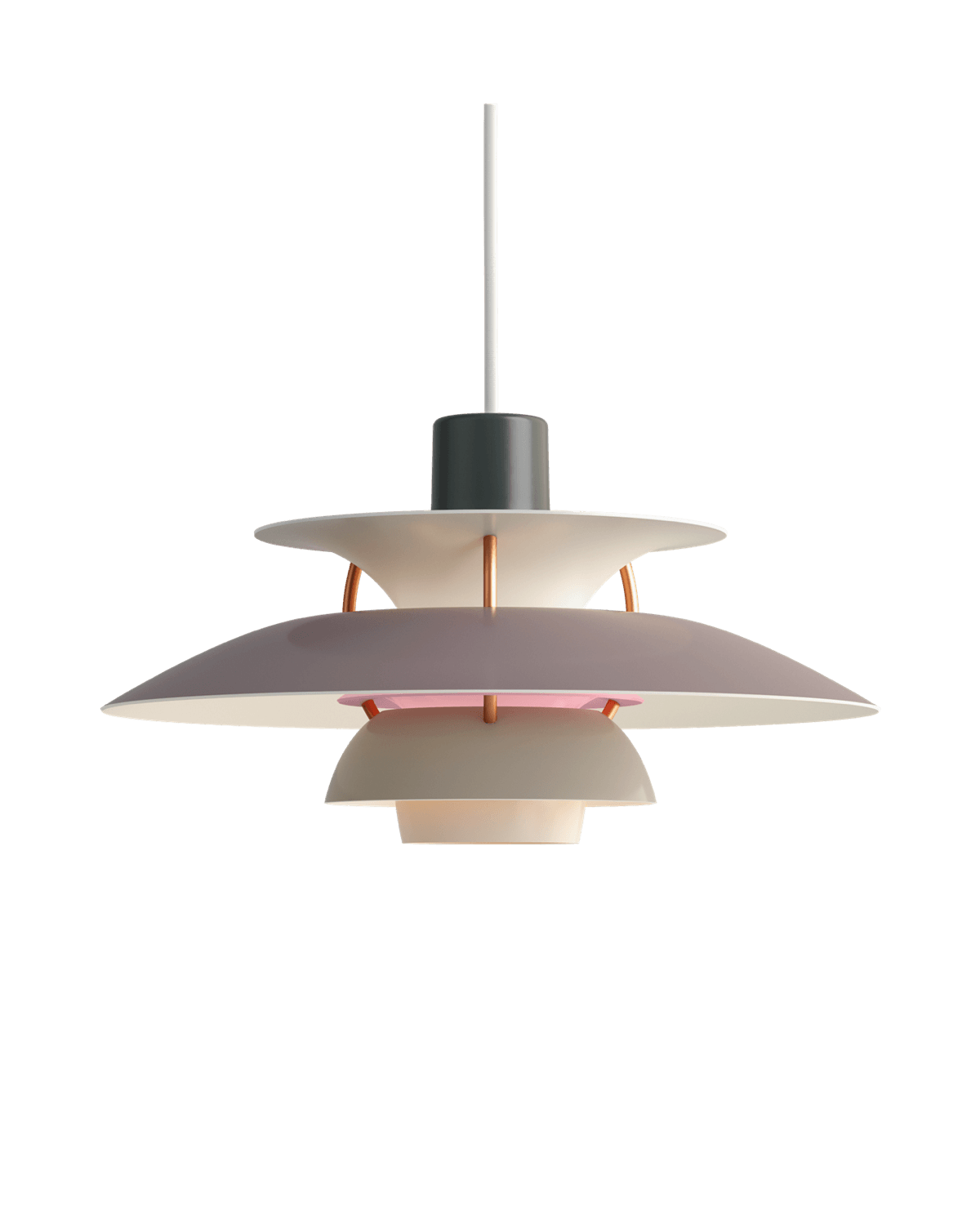 PH 5 Mini on saatavilla sekä perinteisissä PH 5 -väreissä että uudistuneissa, eloisissa sävyissä, jotka on kehitetty yhteistyössä värisuunnittelija Louise Sassin kanssa. Valaisimen moniulotteinen värimaailma yhdistää sävyjen tummat ja vaaleat vivahteet, ja sen häikäisemätön valonsuoja säteilee kauniisti lisäten valaisimen visuaalista vetovoimaa.
