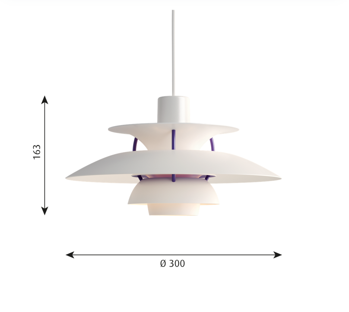 Louis Poulsenin PH 5 Mini -riippuvalaisin on pienikokoinen versio Poul Henningsenin ikonista PH 5 -valaisimesta, joka esiteltiin ensimmäisen kerran vuonna 1958. Sen kerroksittainen rakenne takaa häikäisemättömän ja miellyttävän valon. Vuonna 2017 lanseerattu PH 5 Mini on suunniteltu vastaamaan modernien kotien tarpeita, joissa kaivataan pienempiä kattovalaisimia niin kompakteihin tiloihin kuin suurempien tilojen sisustuksen piristäjiksi. Valaisimen ylävarjostimen halkaisija on 30 cm, mikä tekee siitä sopivan monenlaisiin käyttökohteisiin.