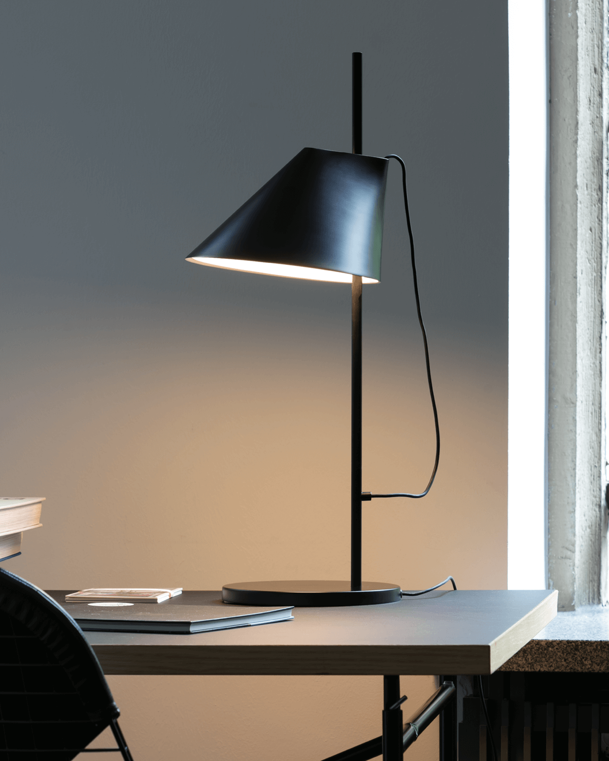 Yuh-valaisimen varjostinta voi nostaa, laskea, pyörittää ja kallistaa pystysuoran tukitankonsa varassa, mikä mahdollistaa valon ihanteellisen suuntaamisen työtilassa, olohuoneessa tai muissa tiloissa. Pelkistetty varjostinmalli tuottaa suoraa, häikäisemätöntä alaspäin suuntautuvaa valoa, kun taas varjostimen yläosan ohut aukko luo pehmeää, ylöspäin suuntautuvaa tunnelmavaloa.