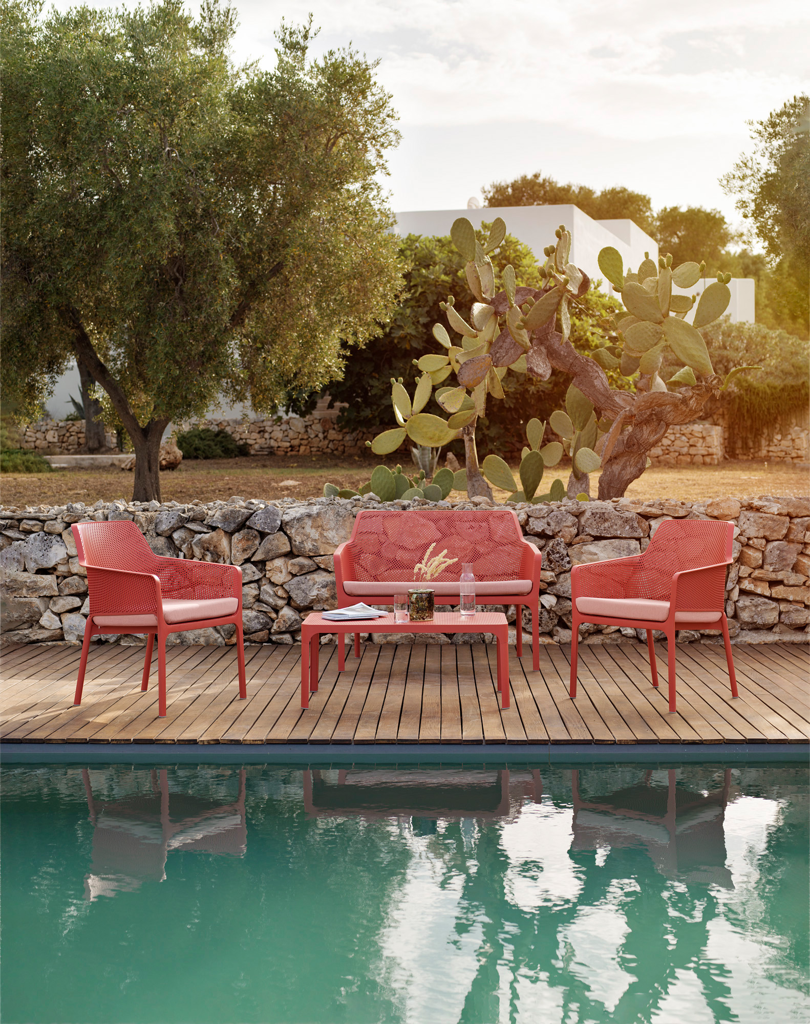 Nardi Net-sohvapöytä on suunniteltu ulkokäyttöön. Pöytä on tarpeeksi painava kestämään tuulisempaakin keliä, mutta kuitenkin helposti siirreltävissä tarvittaessa laskutasoksi toisaalle. Pöytälevyä koristaa Net-mallistolle ominainen rei'itetty kuvio. Valmistettu kierrätettävästä lasikuituvahvistetusta polypropeenista, joka on kestävä ja kevyt materiaali.