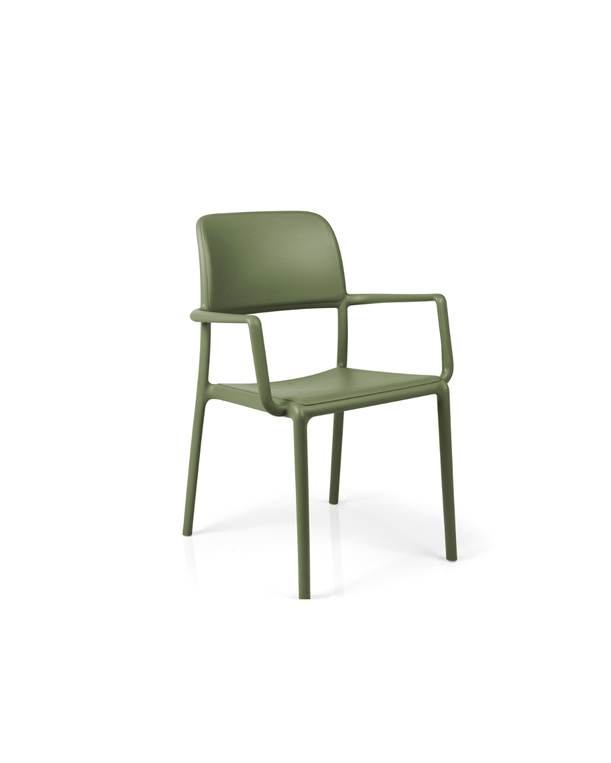 Käsinojallinen Riva ulkotuoli on valmistettu kestävästä ja kierrätettävästä polypropeenista, joka tekee tuolista erittäin kevyen. Kaunis ulkomuoto ja uskomaton istuinmukavuus takaavat täydellisen ulkotuolin terassille tai parvekkeelle. Tuolit ovat pinottavia, joten ne on helppo säilyttää varastossa talven yli.