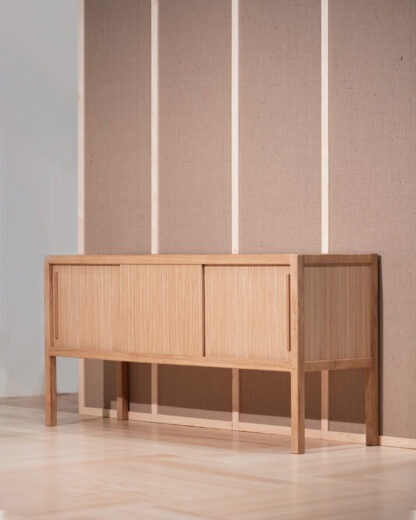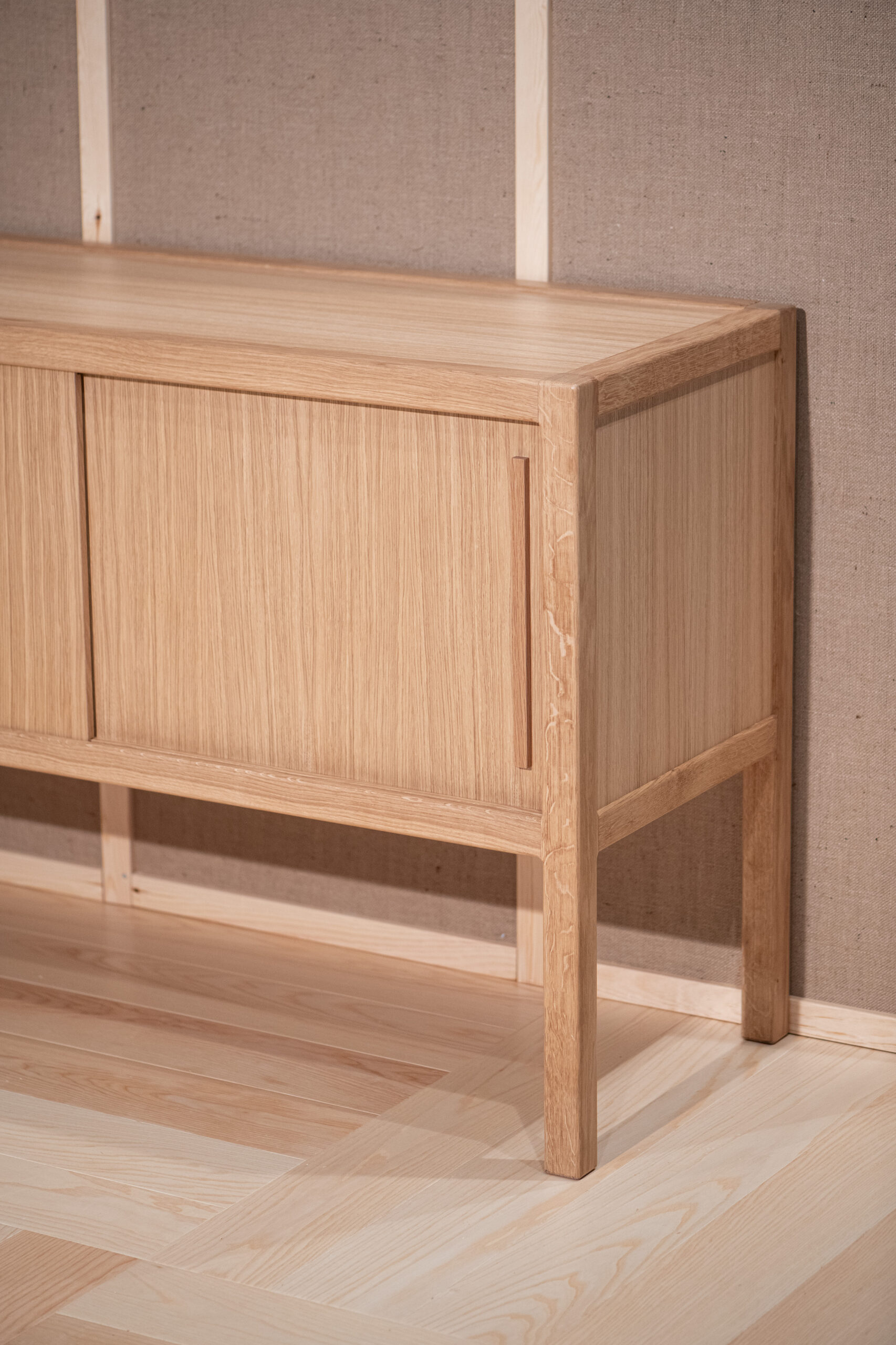 Näyttely-senkki on ajaton ja monipuolinen kaluste, jossa on käytännölliset liukuovet. Mittasuhteiltaan ja kooltaan Näyttely-senkki sopii luontevasti monenlaisiin tiloihin ja käyttötarkoituksiin. Sen voi sijoittaa esimerkiksi ruokailuryhmän yhteyteen astiasenkiksi, olohuoneeseen kirjojen säilyttäjäksi tai vaikka tv:n alapuolelle.