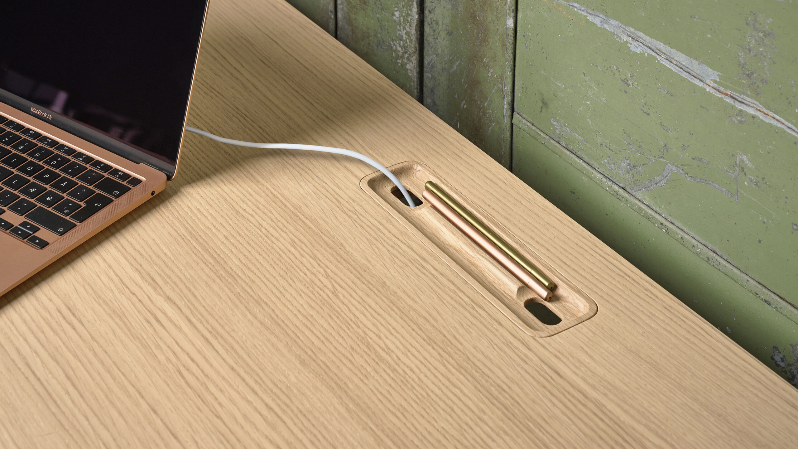 Pöydässä on irrotettava kynälaatikko, jonka kautta johdot saa siististi kulkemaan pöydän läpi. Kannen alle on mahdollista lisätä hylly esimerkiksi kannettavan tietokoneen, tabletin, vihkojen tai muiden tarvikkeiden säilytystä varten. Aeris on sekä käytännöllinen että esteettisesti kaunis työpöytä, joka sopii moneen työtilaan.
