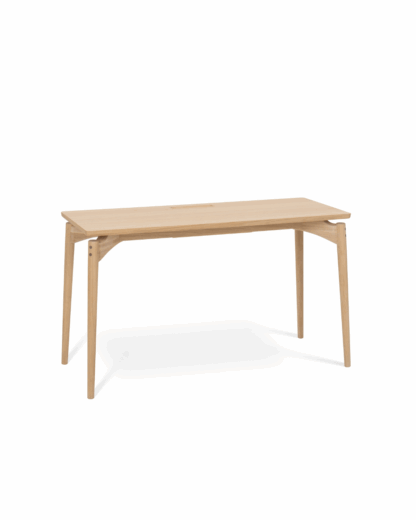 PBJ Aeris-työpöydässä yhdistyy klassinen eleganssi moderniin tanskalaiseen muotoiluun. Pöydän ilmava, "leijuva" kansi antaa sille kevyen ja hienostuneen ilmeen, joka korostaa kauniisti pyöristettyjä, kapenevia massiivipuisia jalkoja ja niiden huolellista viimeistelyä.