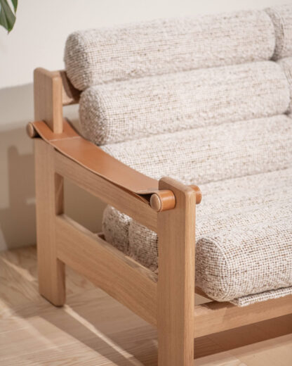Fasetti on tuonut Rento-sohvan uudelleen tuotantoon alkuperäistä mallia uskollisesti kunnioittaen. Tamminen runko, Lauritzonin Fusion-kangas ja nahkaiset käsinojat muodostavat harmonisen kokonaisuuden.