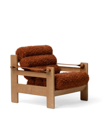 Mattalakatut tammiosat, nahkaiset käsinojat ja pörröinen Doodle-kangas yhdessä pyöreiden istuintyynyjen kanssa luovat kiinnostavan kokonaisuuden.