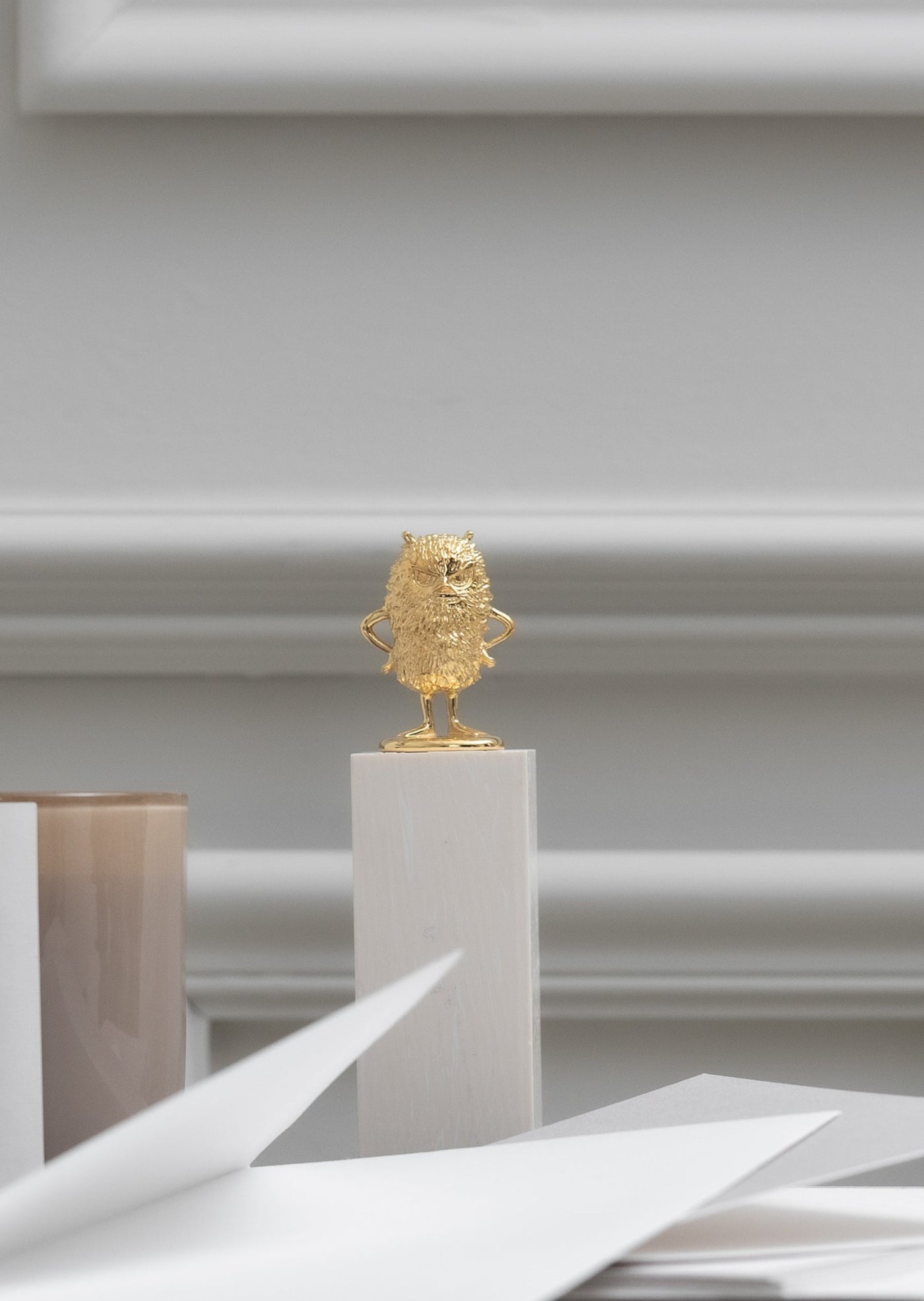 Skultunan Haisuli-figuuri on osa Moomin x Skultuna -kokoelmaa, jossa Tove Janssonin rakastetut muumihahmot ovat saaneet ylleen modernin ja elegantin kultaisen hohteen. Tämä pieni ihastuttava figuuri on valmistettu kestävästä teräksestä ja pinnoitettu aidolla 18 karaatin kullalla, mikä takaa sen pitkäikäisyyden ja ylellisen ilmeen. Haisuli-figuuri tuo arkeen leikkisää luksusta, olipa se sitten lastenhuoneessa tai muissa kodin tiloissa.