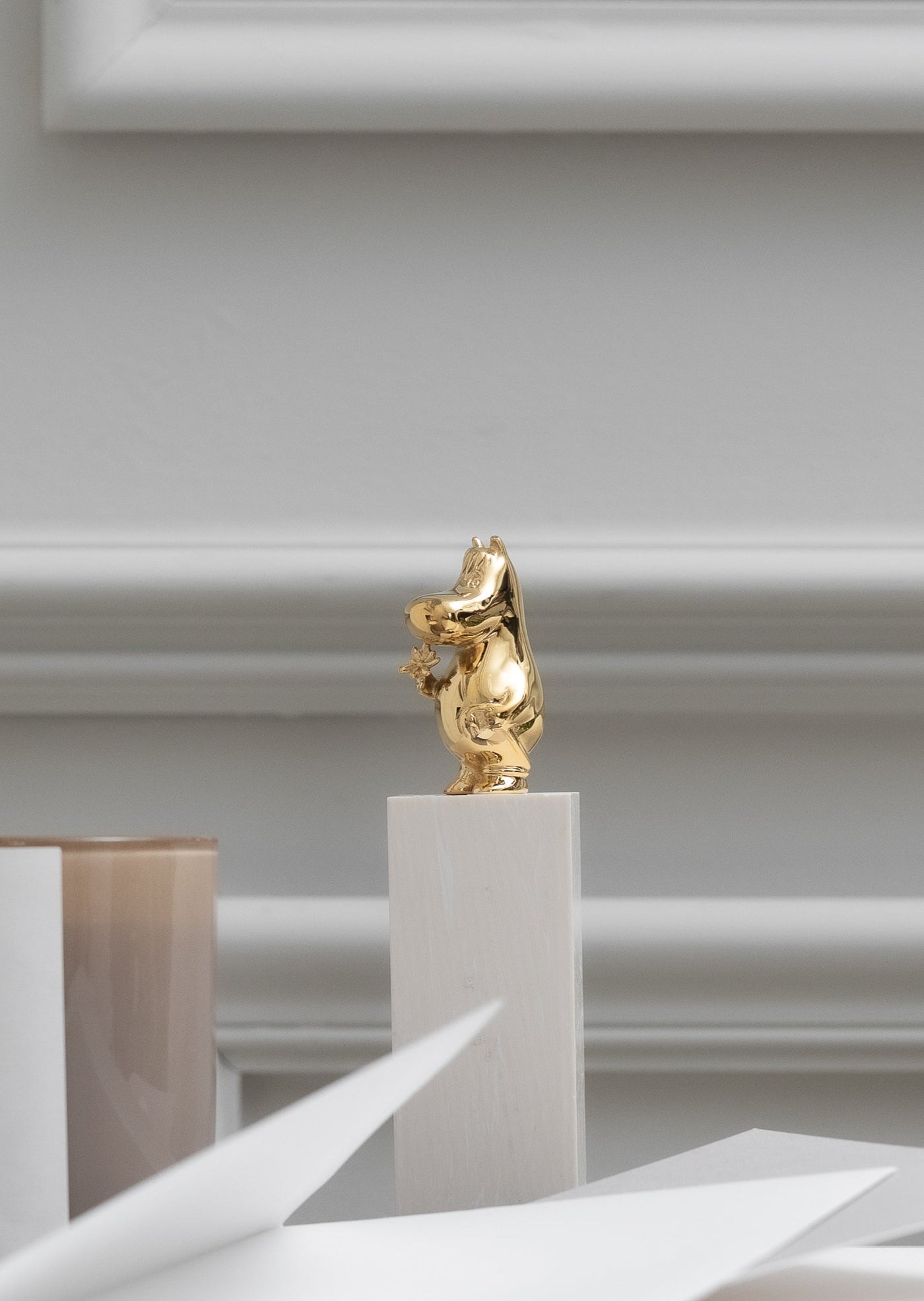 Skultunan Niiskuneiti-figuuri on osa Moomin x Skultuna -kokoelmaa, jossa Tove Janssonin rakastetut muumihahmot ovat saaneet ylleen modernin ja elegantin kultaisen hohteen. Tämä pieni ihastuttava figuuri on valmistettu kestävästä teräksestä ja pinnoitettu aidolla 18 karaatin kullalla, mikä takaa sen pitkäikäisyyden ja ylellisen ilmeen. Niiskuneiti-figuuri tuo arkeen leikkisää luksusta, olipa se sitten lastenhuoneessa tai muissa kodin tiloissa. Skultunan Niiskuneiti-figuuri on ihana lahjaidea niin muumifaneille kuin designin ystäville!