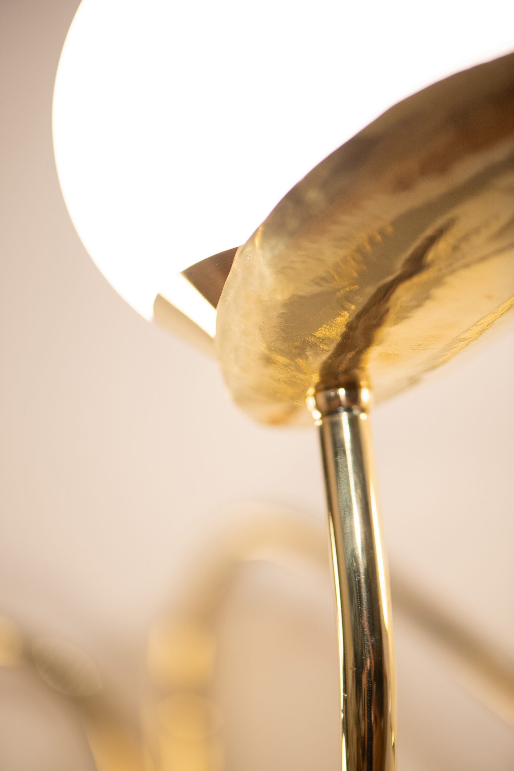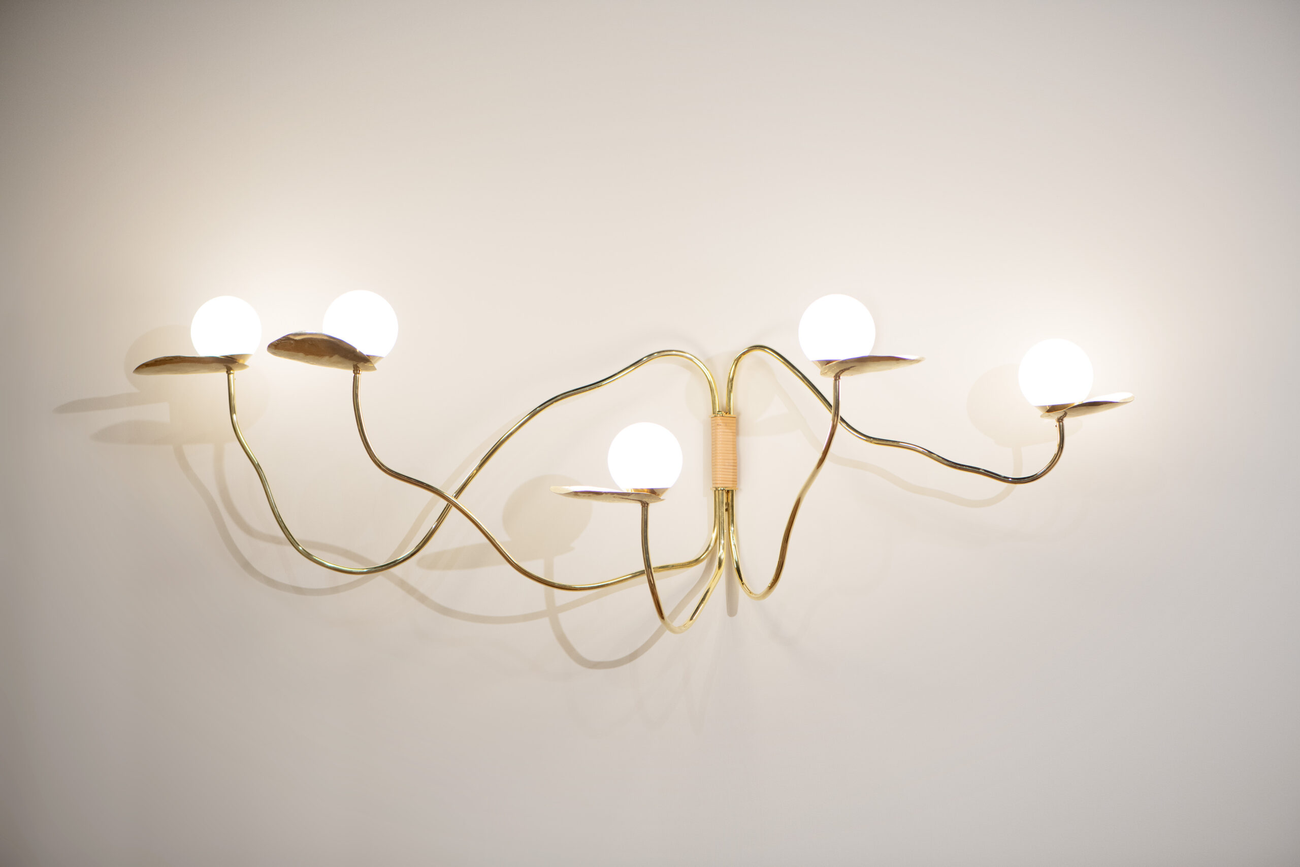 Verso on valmistettu käsinkiillotetusta messingistä. Jokainen lehti on käsintaottu ja säädettävissä eri asentoihin. Orgaaniset, vapaasti käsintaivutetut messinkiputket luovat valaisimelle luonnonmukaisen liikkeen tuntua. Viimeistelynä valaisinta kiertää käsin punottu rottinki, joka tuo kokonaisuuteen lämpöä ja pehmeyttä.