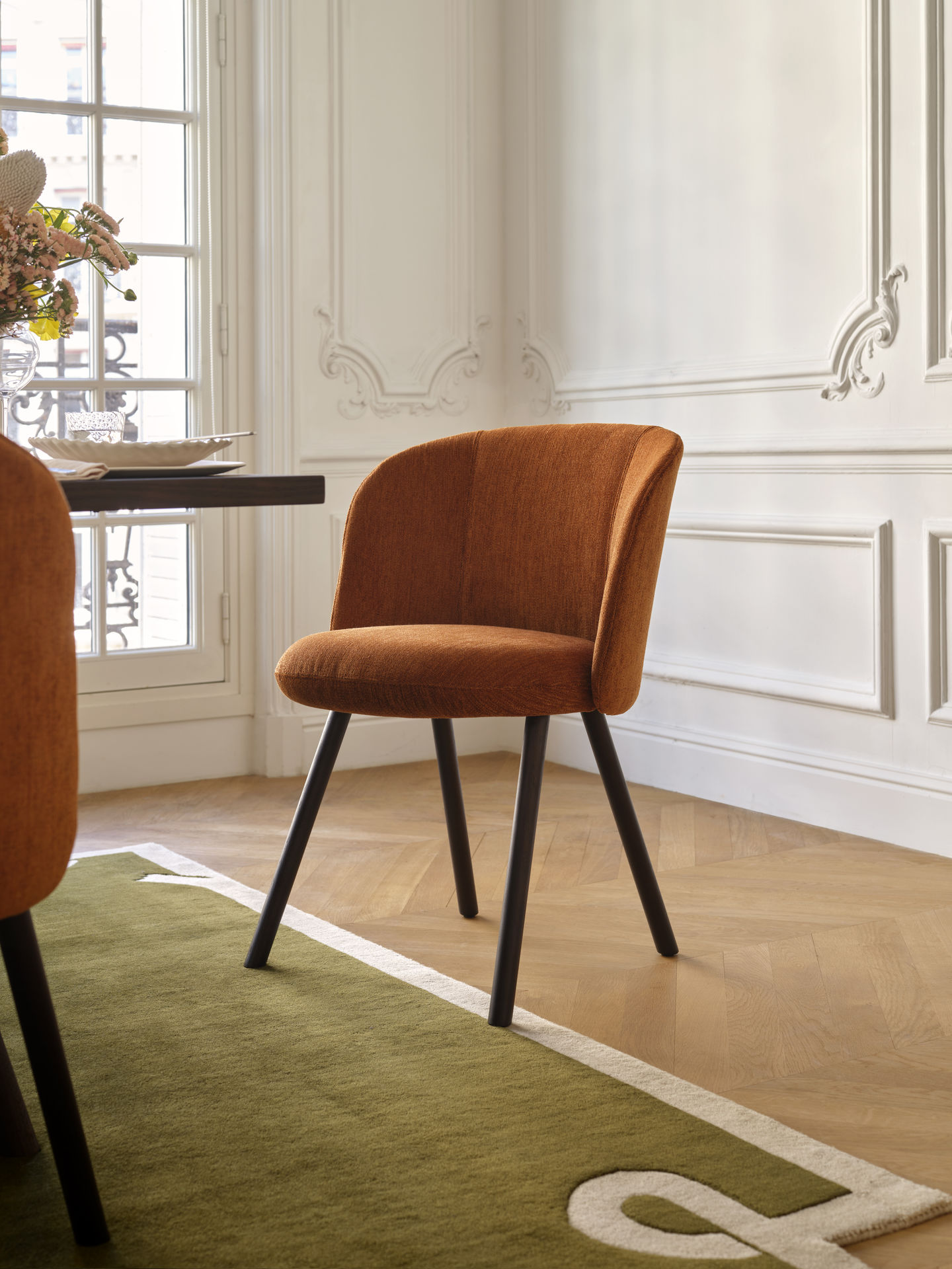 Selkeälinjainen muotoilu tekee tuolista helpon yhdistää erilaisiin pöytiin, mutta se toimii yhtä hyvin myös yksittäisenä katseenvangitsijana esimerkiksi olohuoneessa lisäistuimena.