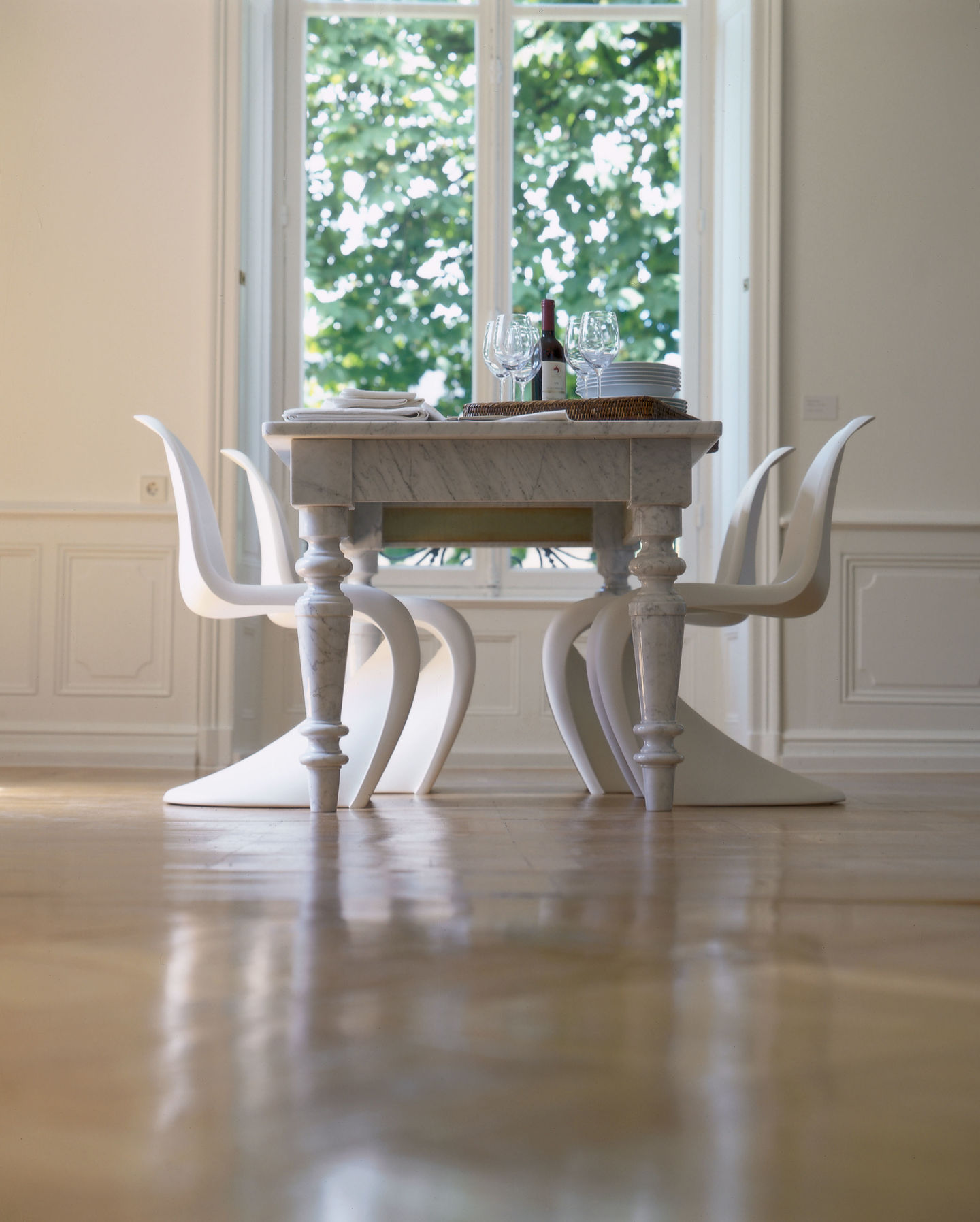 Vitran mattapintainen Panton-tuoli on Verner Pantonin vuonna 1959 suunnitteleman kiiltäväpintaisen Panton Classic -tuolin versio. Siinä missä alkuperäinen Panton Classic sopii ainoastaan sisätiloihin, vuonna 1999 lanseerattu Panton-tuoli käy myös ulkokäyttöön.